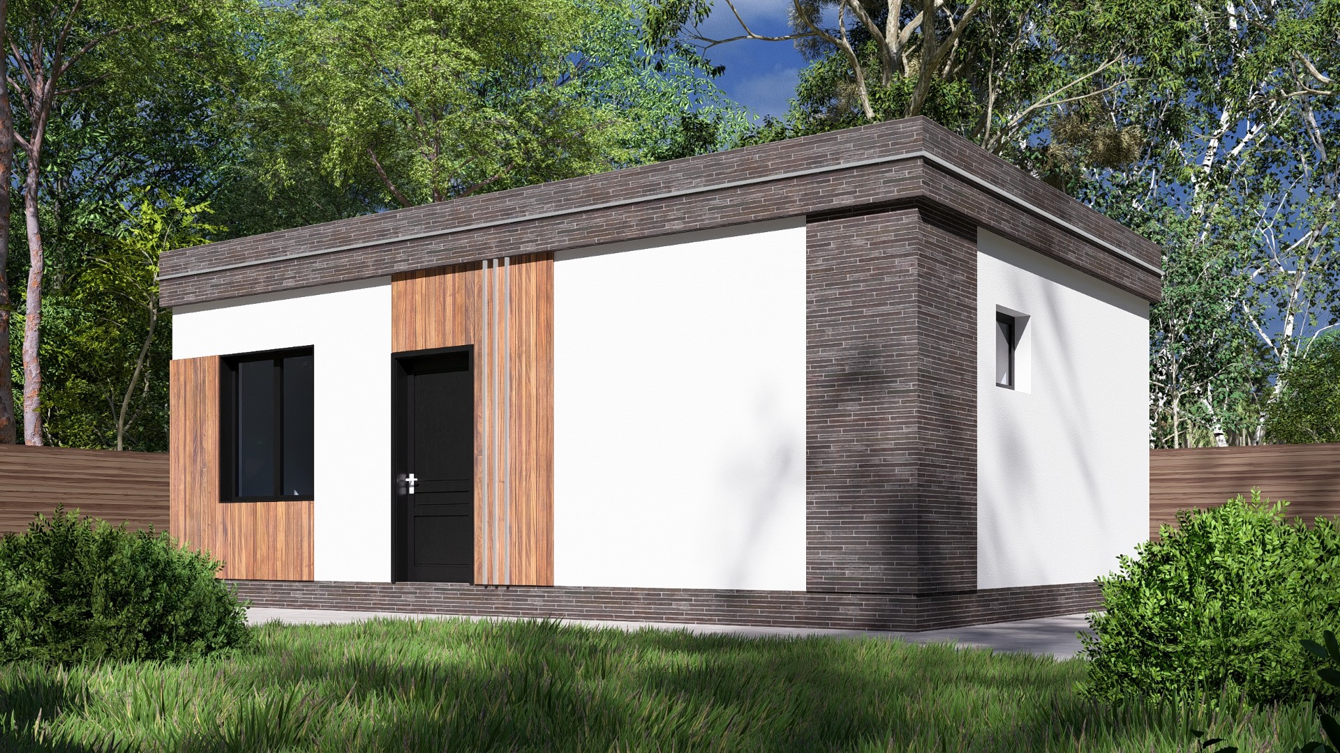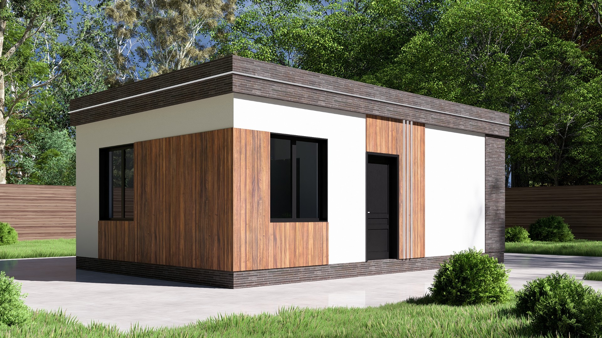 Фундамент + стены + крыша + окна + двери + техническая лестница